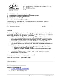 F 8-01 Technology Acceptable Use Agreement for K-12 Students